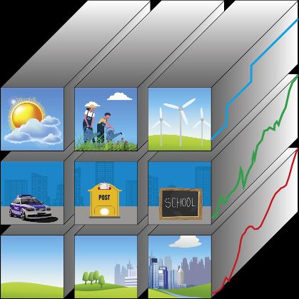 - Fähigkeiten zur Folgenabschätzung: Einbeziehung von Aspekten sowohl der digitalen Nachbildung als auch der Prognosemodelle durch fortschrittliche Berechnungs- und Visualisierungsfunktionen, um schnell eine große Anzahl simulierter Ergebnisse über eine Reihe von räumlichen und zeitlichen Skalen hinweg durchzuführen und so die Untersuchung mehrerer hypothetischer Zukunftsszenarien zu ermöglichen.