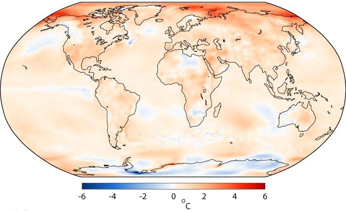 Lufttemperatur in zwei Metern Höhe für das Jahr 2017 im Vergleich zum Durchschnitt der Jahre 1981–2010 Quelle: ECMWF / eoPortal
