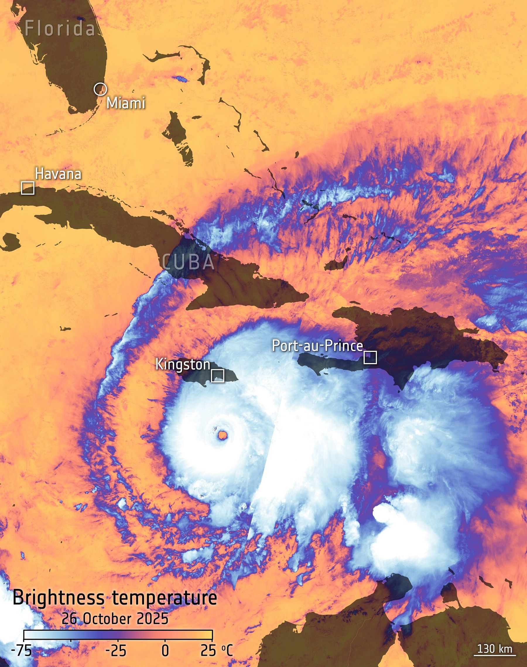 GOES-R (Geostationary Operational Environmental Satellite-R) ist eine Serie geostationärer Wetterbeobachtungssatelliten, die von der NOAA und der NASA betrieben wird und kontinuierliche atmosphärische Beobachtungen liefert, die für die Verfolgung tropischer Stürme von entscheidender Bedeutung sind. Der an Bord befindliche Geostationary Lightning Mapper (GLM) erfasst die Häufigkeit, den Ort und die Dichte von Blitzen, die wichtige Indikatoren für Sturmkonvektion, Niederschlag und Intensitätsänderungen sind.