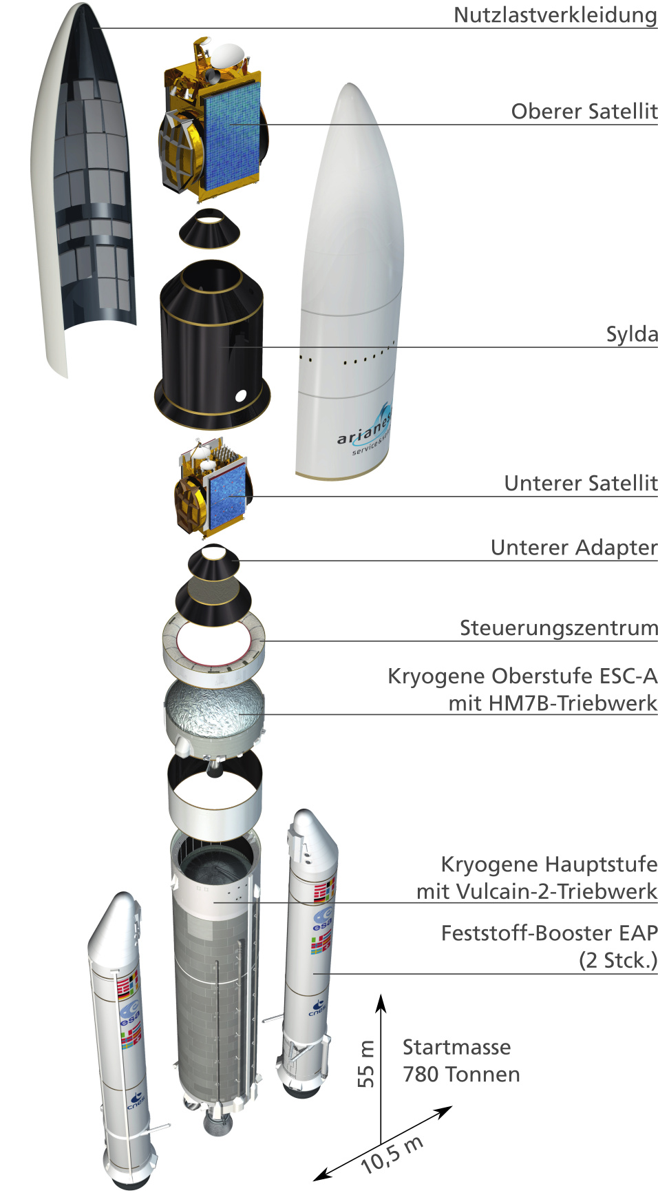 Explosionsansicht einer Ariane 5 ECA Quelle: DLR |
